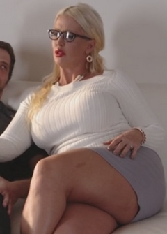 Зрелая блонда с большими сиськами дрючит парня
